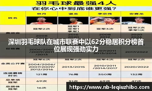 深圳羽毛球队在本次城市联赛中的表现令人瞩目,凭借62分稳居积分榜首位,这不仅仅是数字上的胜利,更体现了整个团队的协作与实力。每一位队员都充分展现出了个人技艺,同时又能在比赛中与其他成员默契配合,共同形成强大的攻防体系。